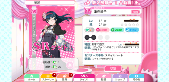 ゲットしたのは2019年1月15日に追加されたばかりの新スクールアイドルスキル